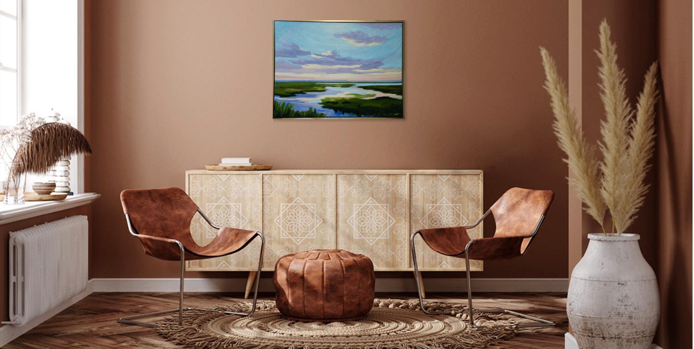 I love how the sky turned out in this painting. I enjoy the impressionist abstract technique. I like to push my limits and try new things especially with my art. I hope you enjoy the pop of colors that I chose. I can paint the marsh scenes over and over. They are my favorite places to paint. This painting makes a great addition to any art collection.