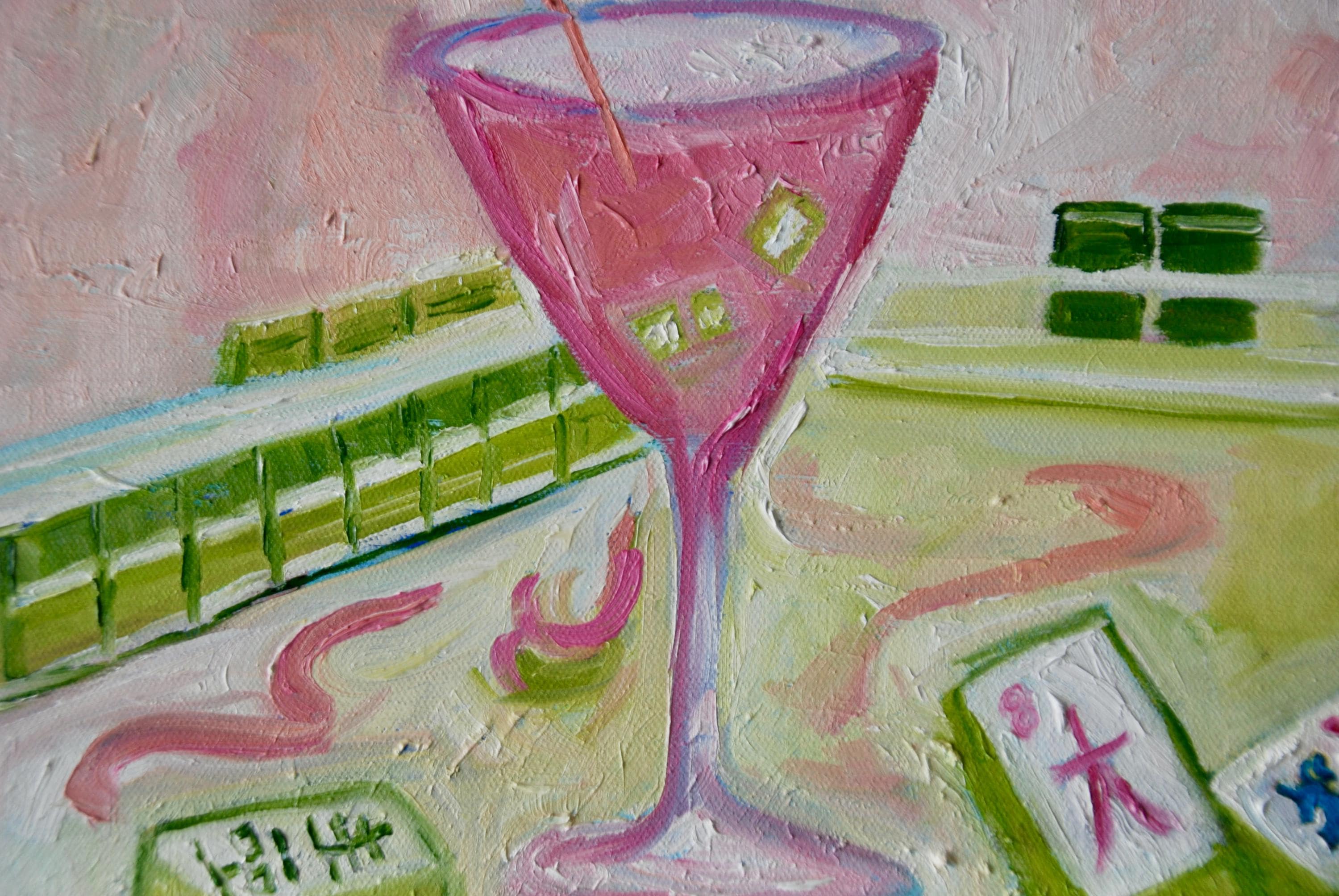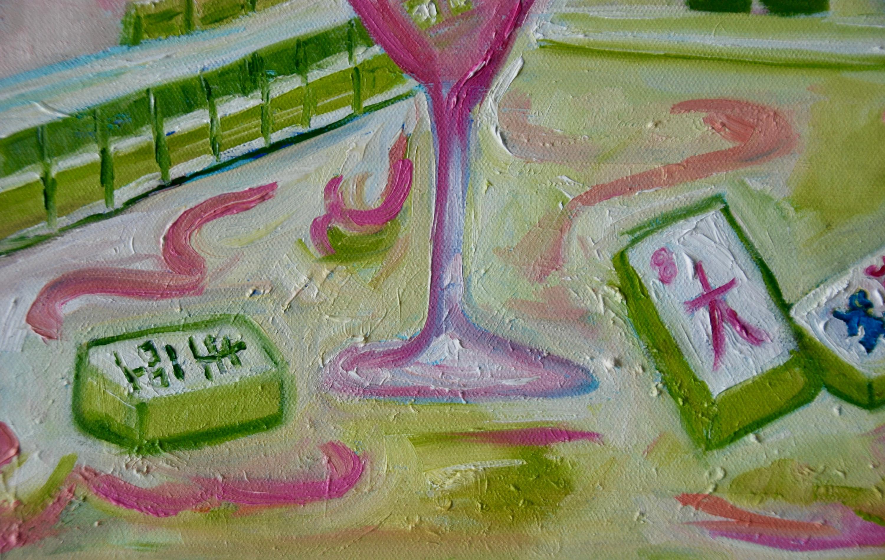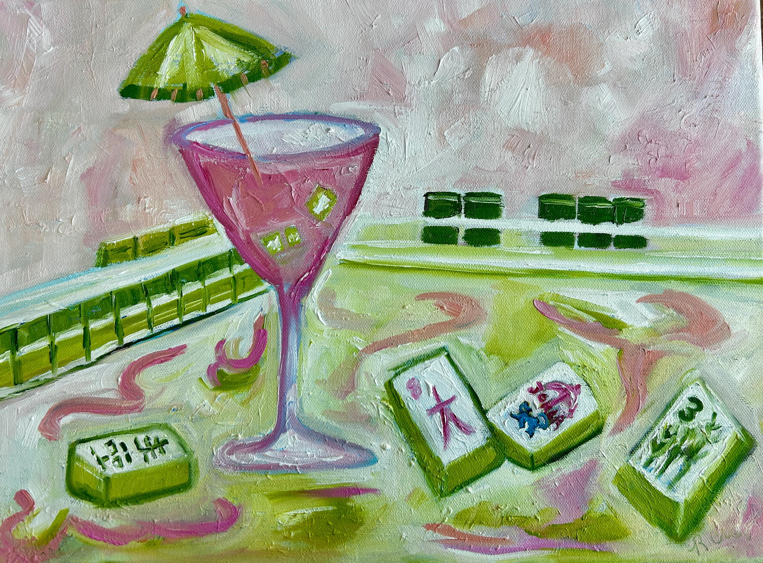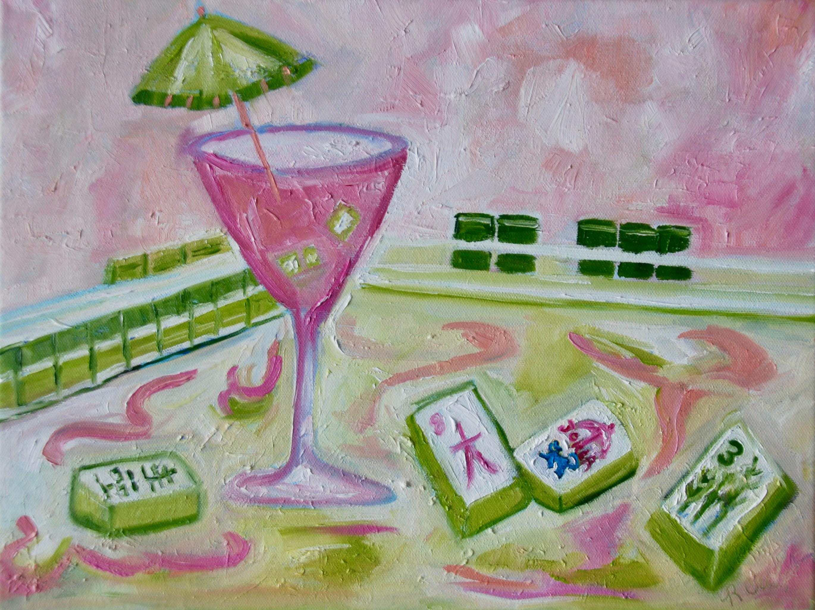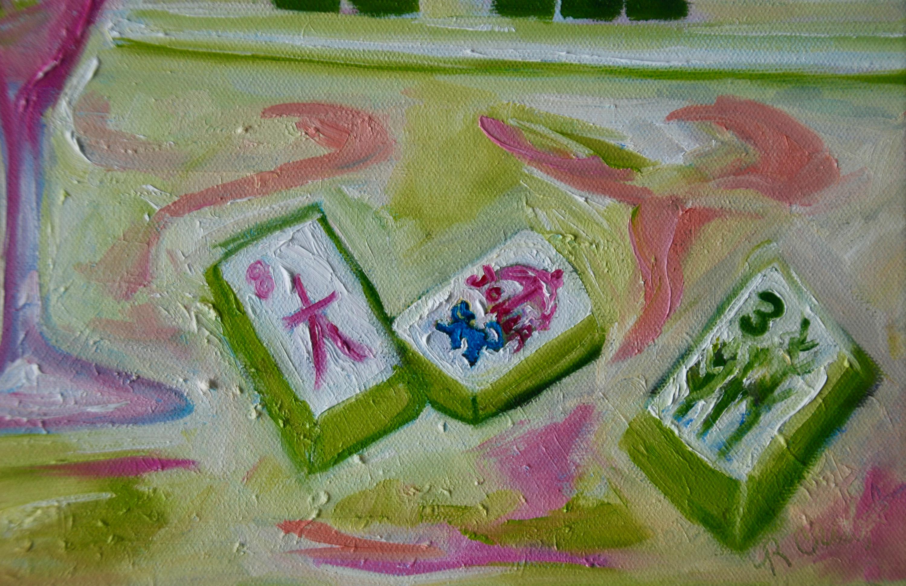 Mahjong madness is everywhere. I'm obsessed. I decided to paint a whimsical painting that would be fun in a game room. Playing with light and color and texture make a painting come alive.